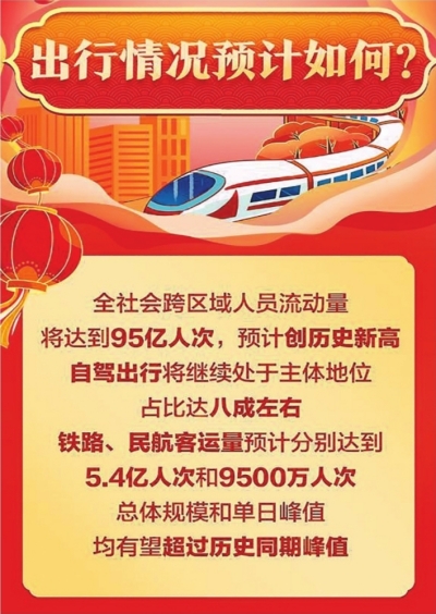 根据交通运输部预测,今年春运期间,全社会跨区域人员流动量预计将达95亿人次,或再创历史新高。正值冬季,雨雪冰冻、大风、降温等天气频发,或对春运出行安全产生影响。中国天气网总结了以下春运安全出行指南,助你平安归家。