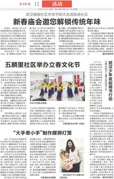 本周末,一场年味十足、文化氛围浓郁的社区盛宴即将开启。2月7日,长江日报社区行、武汉晚报首届社区年货节暨跃进社区迎新庙会,将在江岸区塔子湖街道跃进社区党群服务中心文化广场举行。活动由市委社会工作部指导,江岸区委社会工作部、塔子湖街道办事处联合主办。