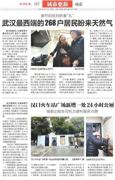 武汉最西端的268户居民盼来天然气
