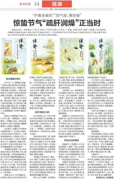 中国中医科学院广安门医院脾胃病科副主任医师柳红良说,中医认为,春属木,应于肝,惊蛰时节人体肝阳之气渐升,而阴血相对不足,容易形成肝火偏盛或肝气郁结的病理状态,进而诱发或加重肝系疾病、外感热病与传染病、脾胃失调等。