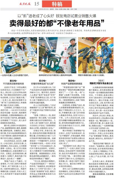 据介绍,店里有300款适老化产品,涵盖智能家居、辅具、服装鞋帽、宠物用品等。在辅具区,拐杖、助行器、手动与电动轮椅等商品为行动不便的老人提供多样选择,轮椅不仅可以购买,还能租赁。