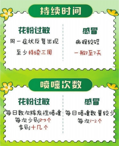 花粉过敏与感冒有何区别