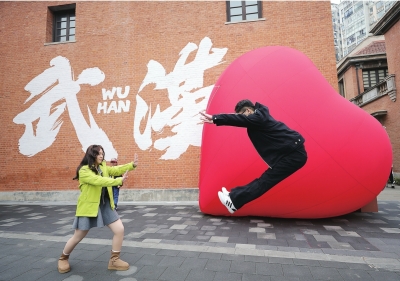 那是四个大学生,正兴奋地在爱心前摆着各种姿势。聊了几句才知道,他们特地从沈阳来武汉旅游。看着他们眼里闪烁的光芒和毫无保留的笑容,我也被感染了。征得他们同意后,我认真地为他们拍下了一组照片。镜头里,是青春的模样,也是这座城市的温柔。