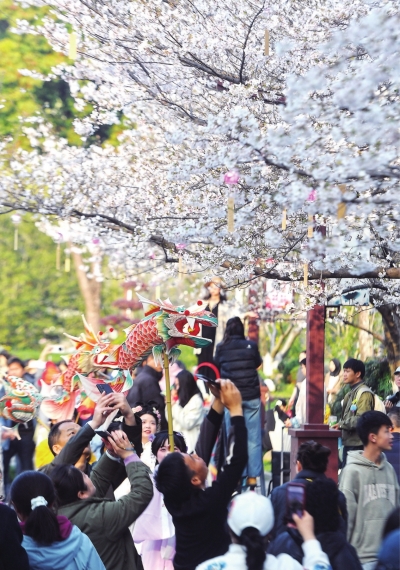 武汉樱花的“擂台”,其实是一场共赢的“百花争艳”。作为长江中游城市群的“中心”,武汉不仅集纳了四面八方的樱花种质资源,打造出群樱缤纷的独特景观,还最早汇聚起五湖四海的游客。