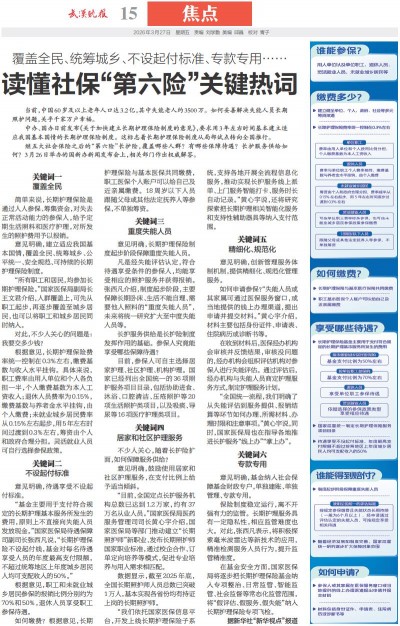 “全国统一流程,我们明确了从失能评估到服务提供、报销结算等环节如何办理、所需材料、办理时限和注意事项。”黄心宇说,同时,国家医保局也在指导各地推进长护服务“线上办”“掌上办”。
