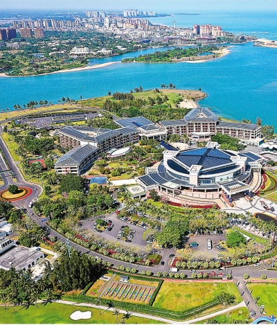 博鳌零碳示范区位于琼海市博鳌镇东屿岛,是博鳌亚洲论坛永久会址所在地。2022年初,住房和城乡建设部与海南省政府在此共同创建我国首个近零碳示范区,实施建筑绿色化改造、可再生能源利用等8大类18个子项目。2024年3月投入运行时,示范区碳排放量较2019年下降96.2%,处于“近零碳”状态。
