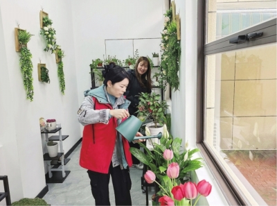 居民潘丹:以前参加活动都是爬楼梯到社区二楼会议室。亲民化改造后,进门有花房,居民议事、手工制作、共享厨房都在一楼,新老邻居更熟,心与心更近。