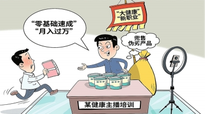 记者调查发现,“健康主播”被炒作成“零门槛、高收入”的“金饭碗”,针对“健康主播”的速成培训也成为一些机构精心设计的“围猎”骗局。
