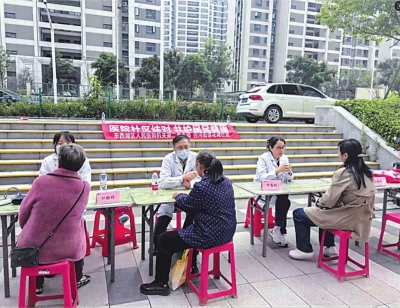 “社区主导、多方联动、资源整合”一直以来就是莲花湖社区基层治理的核心做法,更是“莲湖医+亲”项目落地见效的保障。作为“莲悦・共享客厅”的重要复合型服务内容,项目打破医疗与社区治理壁垒,构建起“社区+医疗机构+志愿者”三方协同体系:社区党委发挥统筹协调作用,将健康驿站纳入客厅功能布局,搭建居民与医护对接渠道;协和东西湖医院机关第二党支部派驻专业医护入驻驿站,开展免费检测、健康咨询、科普讲座等基础服务,并聚焦上门服务,为居家康复患者提供专业支撑;社区志愿者主动衔接服务、反馈居民需求,形成“专业医疗+社区统筹+志愿助力”的良性循环,让项目从单一医疗服务升级为多方共建的民生样板。