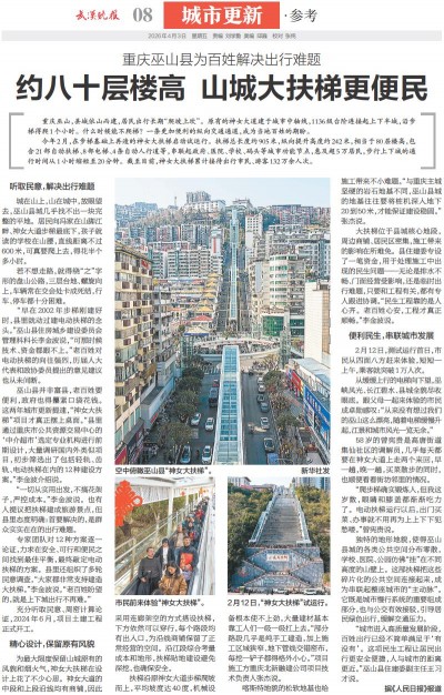约八十层楼高 山城大扶梯更便民