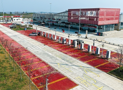 优化升级后的停车场宽敞规整,新能源充电区与普通车位清晰分区,彻底告别拥挤杂乱。春运期间,双侧服务区日均服务新能源车近3000台次,高效便捷的能源补给,成为绿色出行路上的坚实保障。