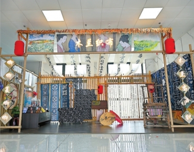 特色商超与文创区新意十足,“木兰织布”网红打卡点蓝白织锦静静悬挂,古朴纹路承载黄陂非遗技艺。暖光轻洒、布艺轻垂,两位女生特意驻足,随手一拍就是自带文艺气息的旅途大片,高速路上的诗意在此定格。