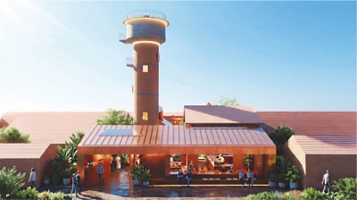 走到原水厂旧址,一座红砖水塔静静矗立。塔身斑驳,却有种沉静的力量感。施工围挡内,耐候钢架已运抵现场,工人正按照图纸测量放线。“水塔咖啡”四个字,将在不久后变成现实,这座十余米高的老水塔,将保留原有结构,仅用耐候钢、红砖等在地性材料稍加修饰,塔下将生长出一座花园聚落。想象一下:坐在水塔下喝咖啡,抬头是工业遗存的沧桑,低头是自然美学的花草,工业与田园在此刻和解。