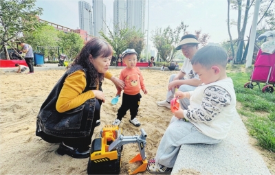 一群小朋友在公园沙池里,塑料小铲子挥个不停,堆沙堡、挖地道,叽叽喳喳闹成一团,玩得满头大汗也舍不得走。“自从新建了公园沙池,孩子每天嚷着要来。”家住军威苑小区的陈群告诉记者,由于公园很近,只要天气好,她都会带孩子来晒太阳,步行仅需四五分钟。