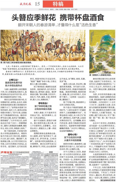 头簪应季鲜花 携带杯盘酒食