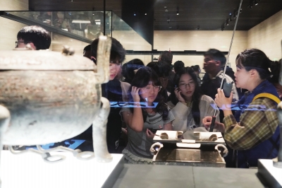 4月12日上午,来自湖南的1500人研学团队抵达武汉,首站便“打卡”湖北省博物馆,感受“楚文化”。记者走访多家旅行社了解到,武汉春季研学游市场持续迎来客流高峰。