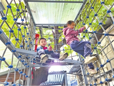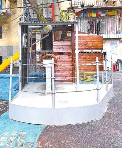 最经济的办法,是把树移走,腾出整齐的地方放标准化设施,但郭大齐没让挖机进场。“改造更新不是做简单的加减法,而是要为居民留住建筑原本的记忆。”他带着团队绕着老树,花费近半年时间,硬是“手搓”出一艘轮船。人工成本加上材料费用,花了近5万元。