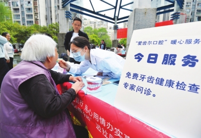 在健康服务区,国药控股湖北国大药房有限公司的展位前围满了前来咨询的居民。专业药师耐心地为每一位居民解答用药疑问,提供个性化安全用药指导,并普及常见疾病的预防知识。爱齿尔口腔医疗团队也带来了“黑科技”——“口腔智慧屏”设备。居民只需轻轻一扫,设备便能进行全景扫描并快速成像,直观展示口腔内部状况。专业医生根据扫描结果,逐一分析问题并提供针对性护牙建议。