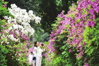4月12日,东湖磨山杜鹃园迎来盛花期,80万株杜鹃竞相绽放。