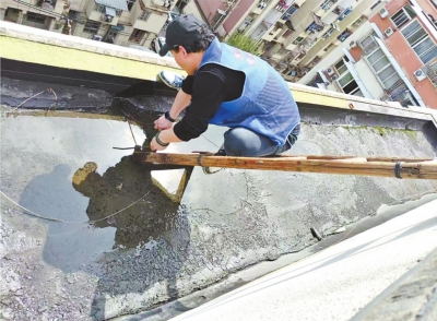 4月10日,又一场雨过后,我看着楼顶的积水,觉得不能再等了。抱着试试看的心态,我在社区微信群里找到了网格长刘超,把情况和拍的照片发了过去。信息发出去,我心想,社区事多,这事不知道要排到什么时候。