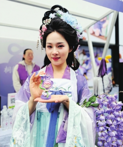 当天,社区正在举办“泡桐花嘉年华”特色公益市集。记者注意到,一款名为“桐宝”的紫色卡通盲盒格外受欢迎。据董世斌介绍,这一社区专属IP形象由居民共同参与设计,以泡桐花为灵感,旨在通过社区运营理念,将特色文化转化为情感纽带,构建起共建共治共享的社区共同体。