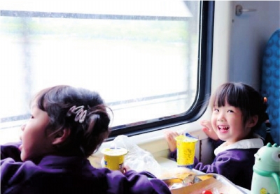 孩子们趴在车窗前,小脸贴着玻璃,眼睛睁得圆圆的,一会儿喊着“长江”,一会儿叫着“黄鹤楼”,还有江边的柳树甩着绿绿的长辫子,田野里的小牛慢吞吞地吃草……新奇地漫游江城。