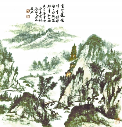 释文:峰峰云锁静,壑壑水流深。毓秀如仙境,文人墨客吟。