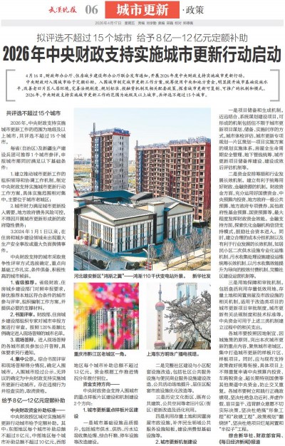2026年中央财政支持实施城市更新行动启动
