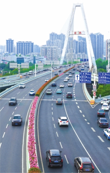 武汉晚报讯(记者明眺生 通讯员余后梁 李玲 孙悦)4月20日,市民郭女士驾车上班途经武汉大道金桥大道高架,发现中分带内的粉红色月季开爆了。“看到这些美丽的月季,很开心!”