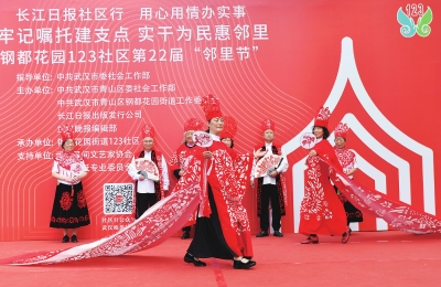 24日,长江日报社区行暨钢都花园街道123社区第22届“邻里节”活动举行。图为社区剪纸班的成员们带来的《剪纸服装秀》。