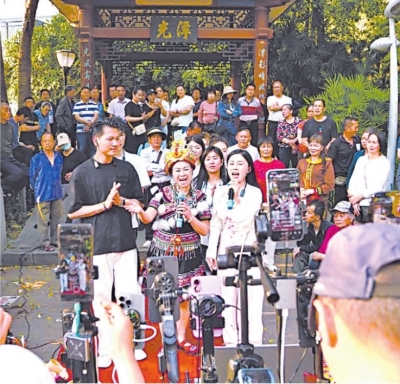 山歌台旁,“山三妹”韦莉莉调试着架子上的直播设备。这位在短视频平台拥有百万粉丝的“90后”山歌手,把古老的歌圩搬上网络,许多天南地北的网友还会与她“线上PK”。山歌的边界在开放中拓展,文化的生命在交融中延续。